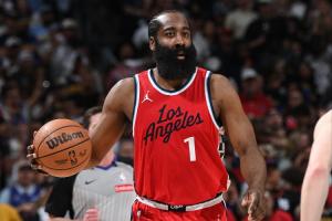 有点疲惫?哈登被换下场一屁股瘫坐在板凳上&抬头仰面