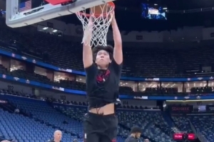 GIF-杨瀚森赛前热身各种扣